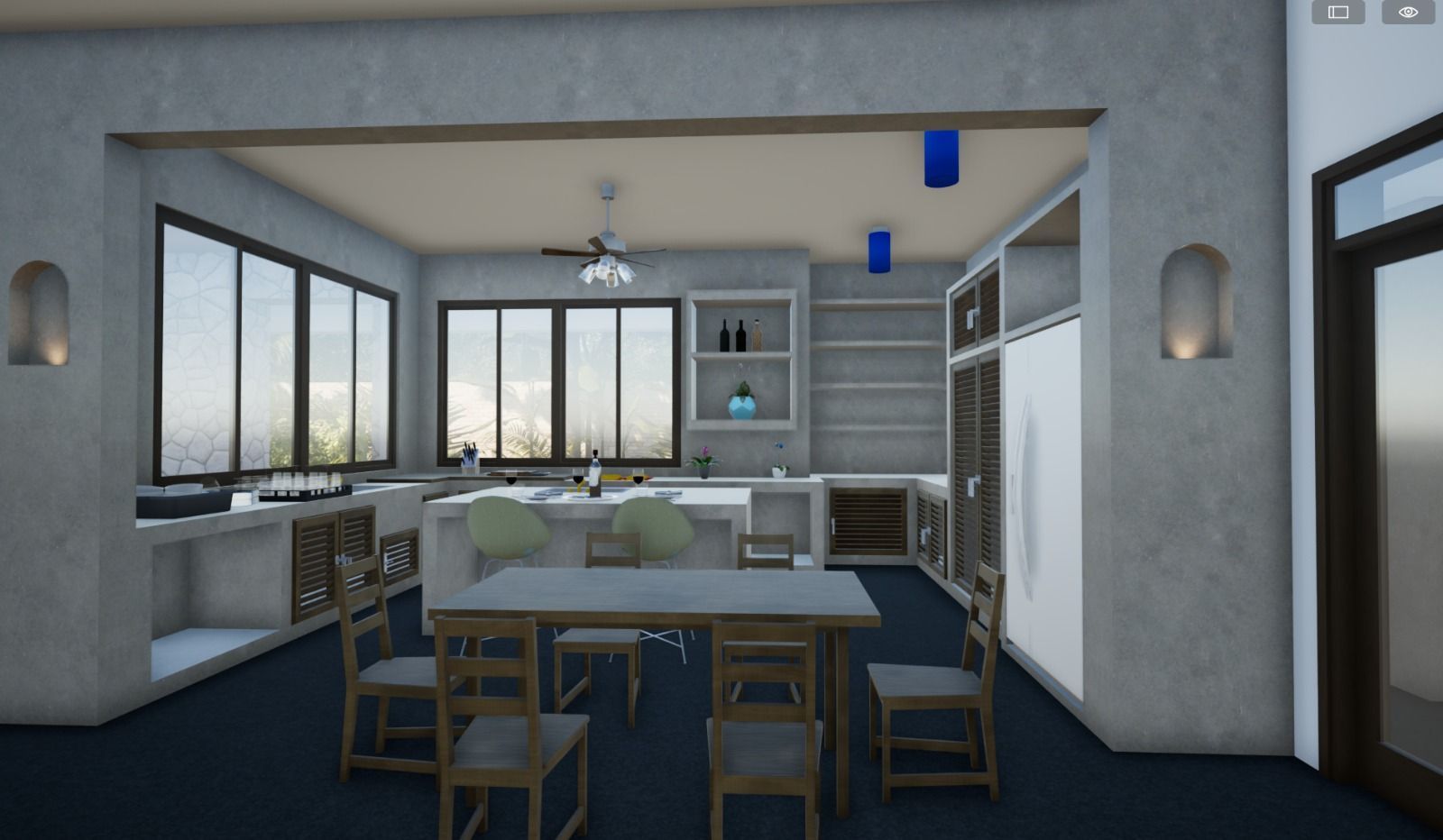 - Open living and dining space with kitchen